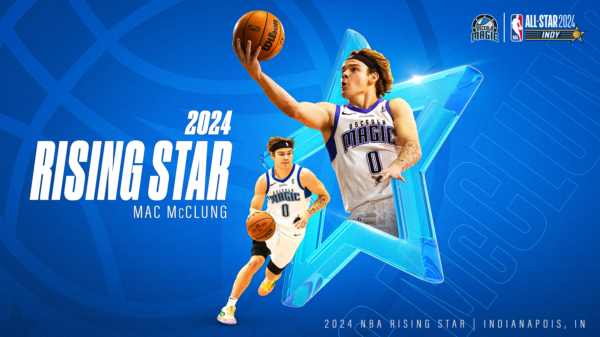 Kissimmee, Fla. – Osceola Magic guard Mac McClung has been selected to participate in the 2024 Panini Rising Stars, which will be played on Friday, Feb. 16 at Gainbridge Fieldhouse in Indianapolis, Indiana as part of NBA All-Star 2024. TNT will televise the annual showcase of premier young talent at 9 p.m. ET.