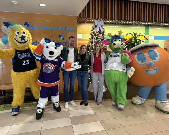Osceola Magic mascot Swish joined STUFF from the Orlando Magic, Shades from the Solar Bears and Lil Squeezy from the Orlando Squeeze on a visit to AdventHealth For Children to wish patients and their families a happy holiday.