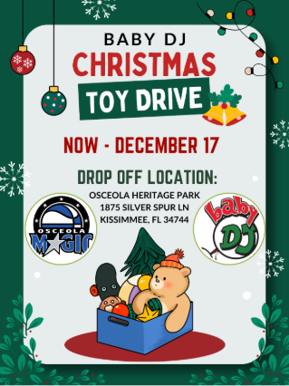 The Osceola Magic are supporting the Central Florida-based nonprofit Baby DJ for their annual toy drive this holiday season. The Magic’s home arena, Osceola Heritage Park, will serve as a drop-off location from now until December 17 for anyone wishing to donate new, unwrapped toys for families in need.