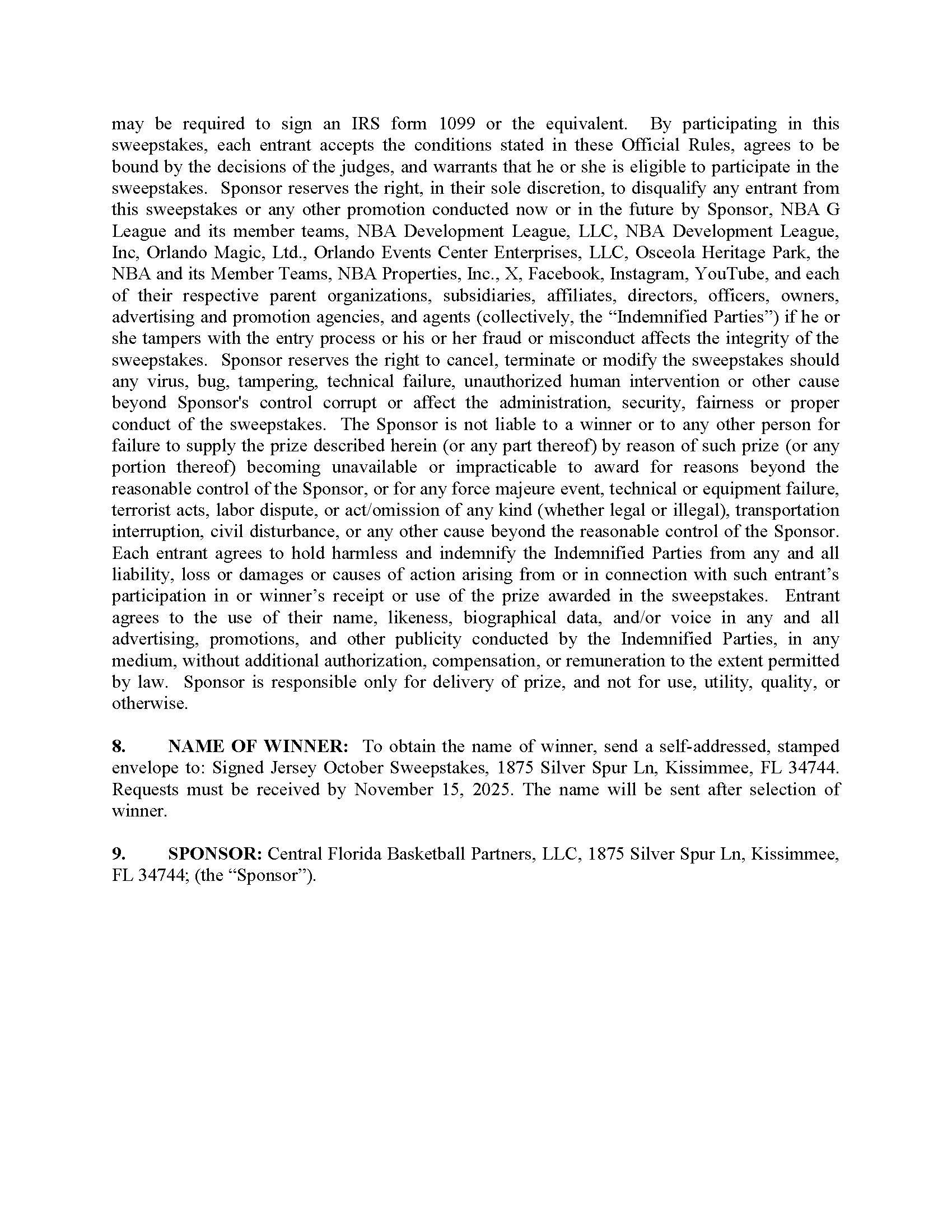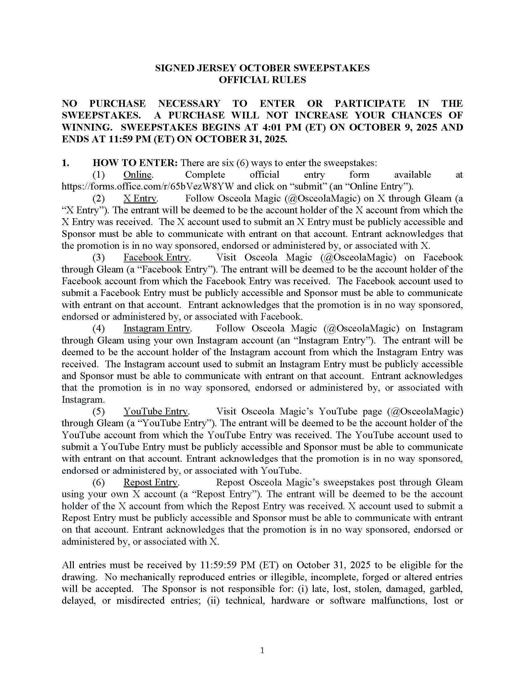 October 2025 Sweepstakes Rules