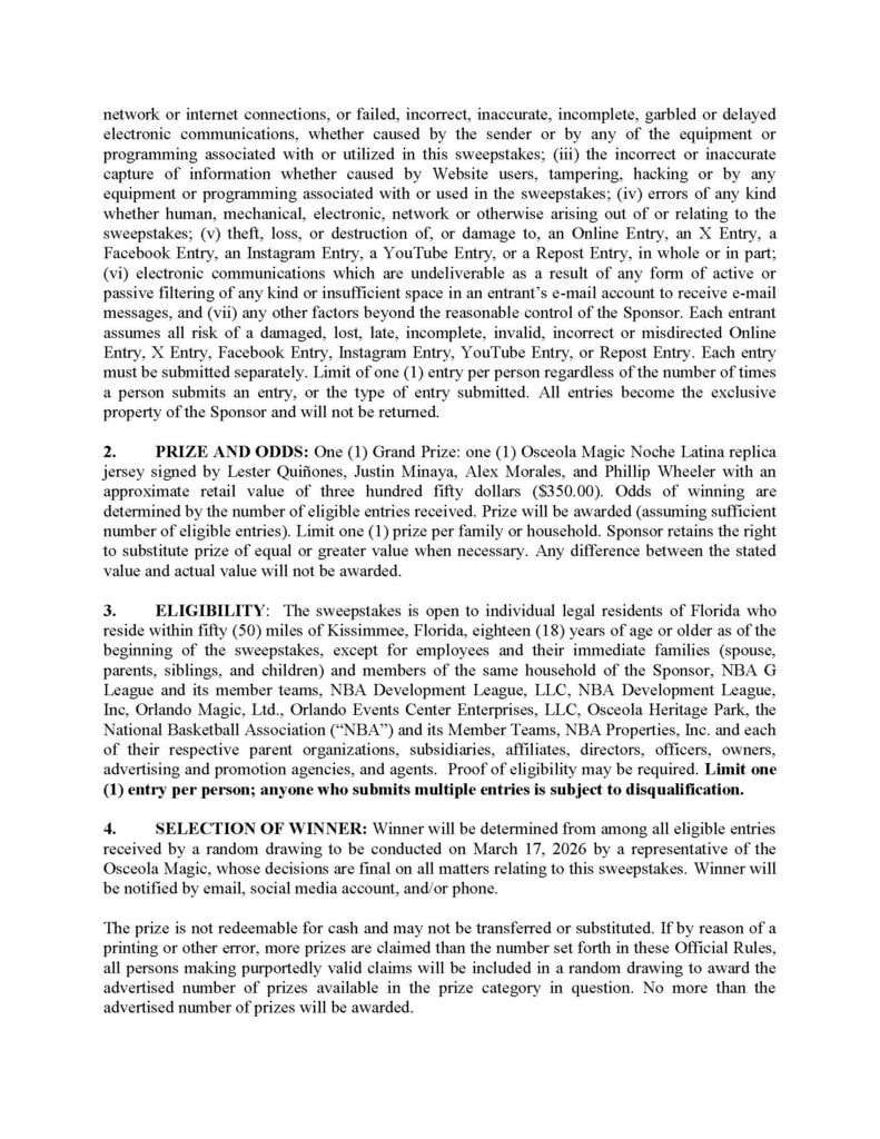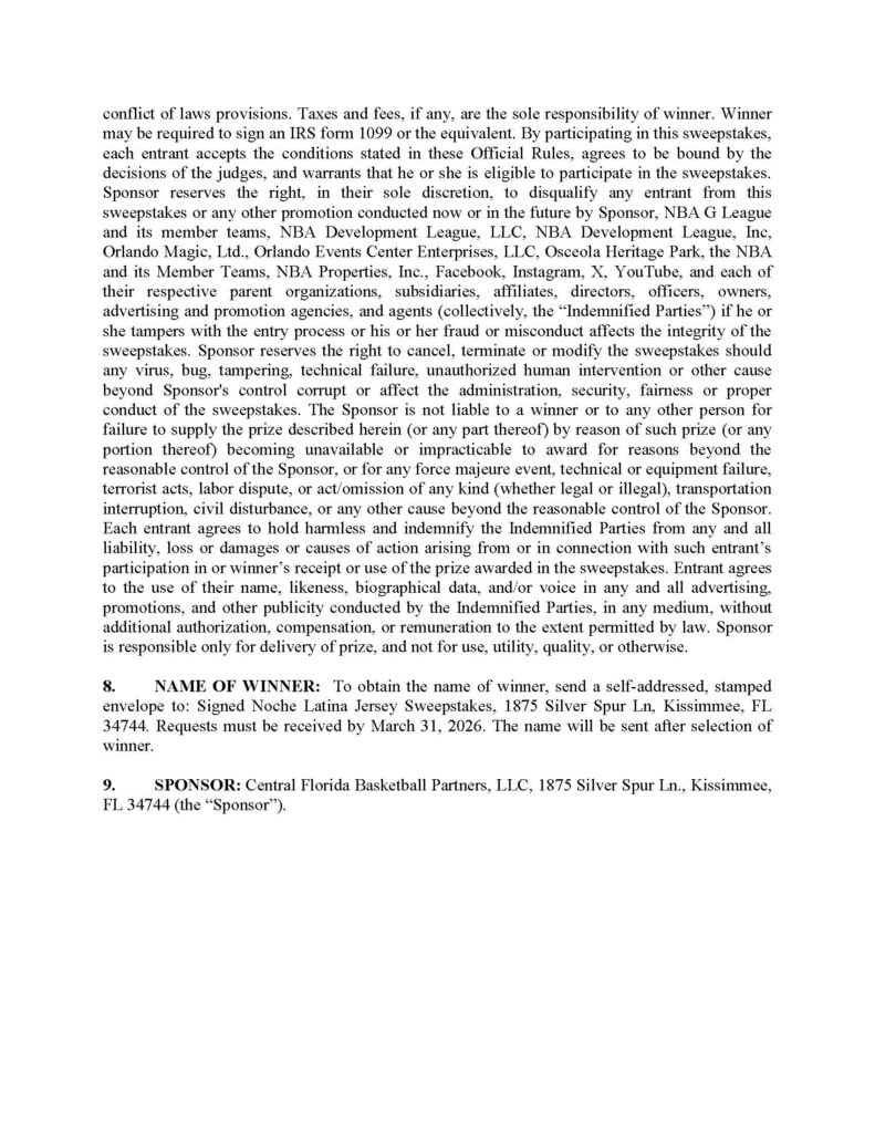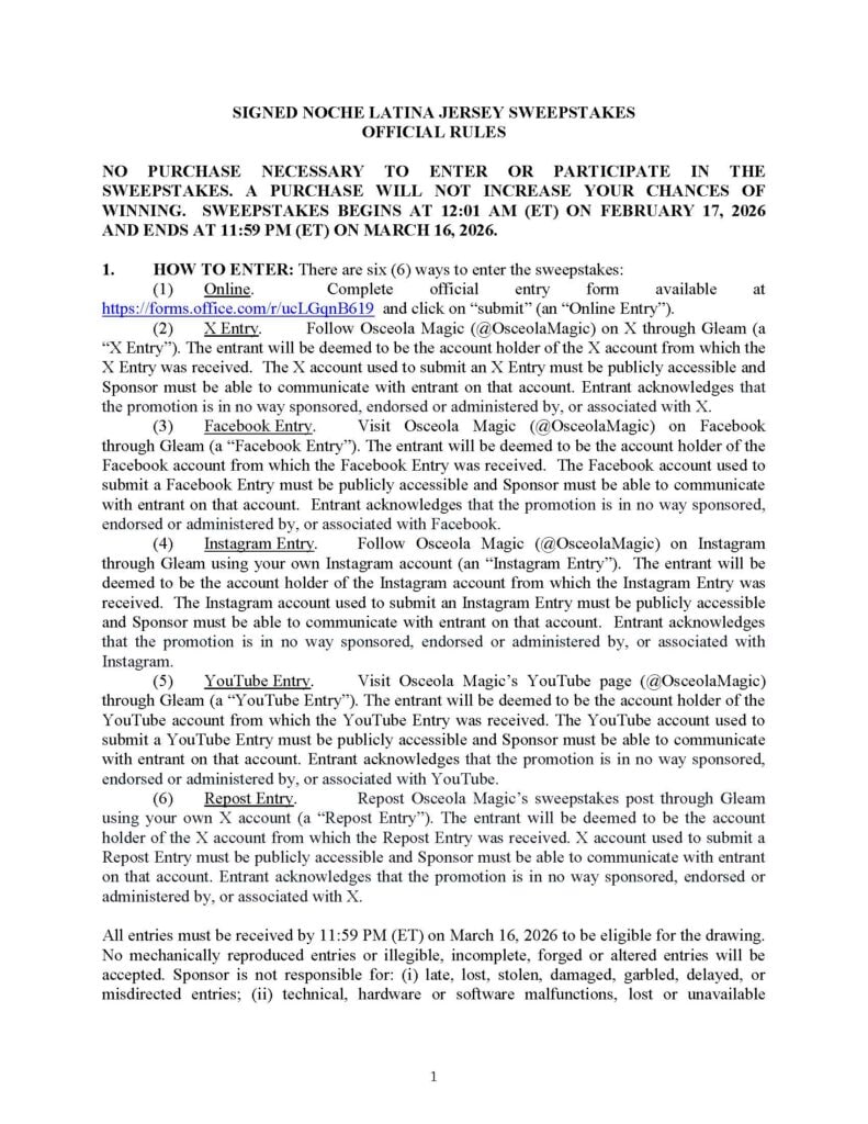 Signed Noche Latina Jersey Sweepstakes Official Rules